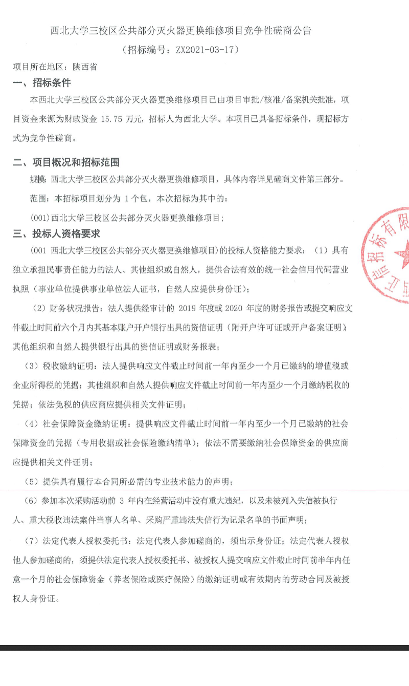 九游会在线登录官网三校区公共部分灭火器更换维修项目竞争性磋商公告