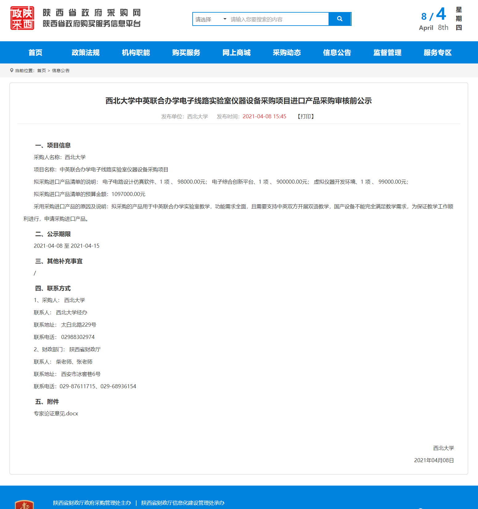 九游会在线登录官网中英联合办学电子线路实验室仪器设备采购项目进口产品采购审核前公示