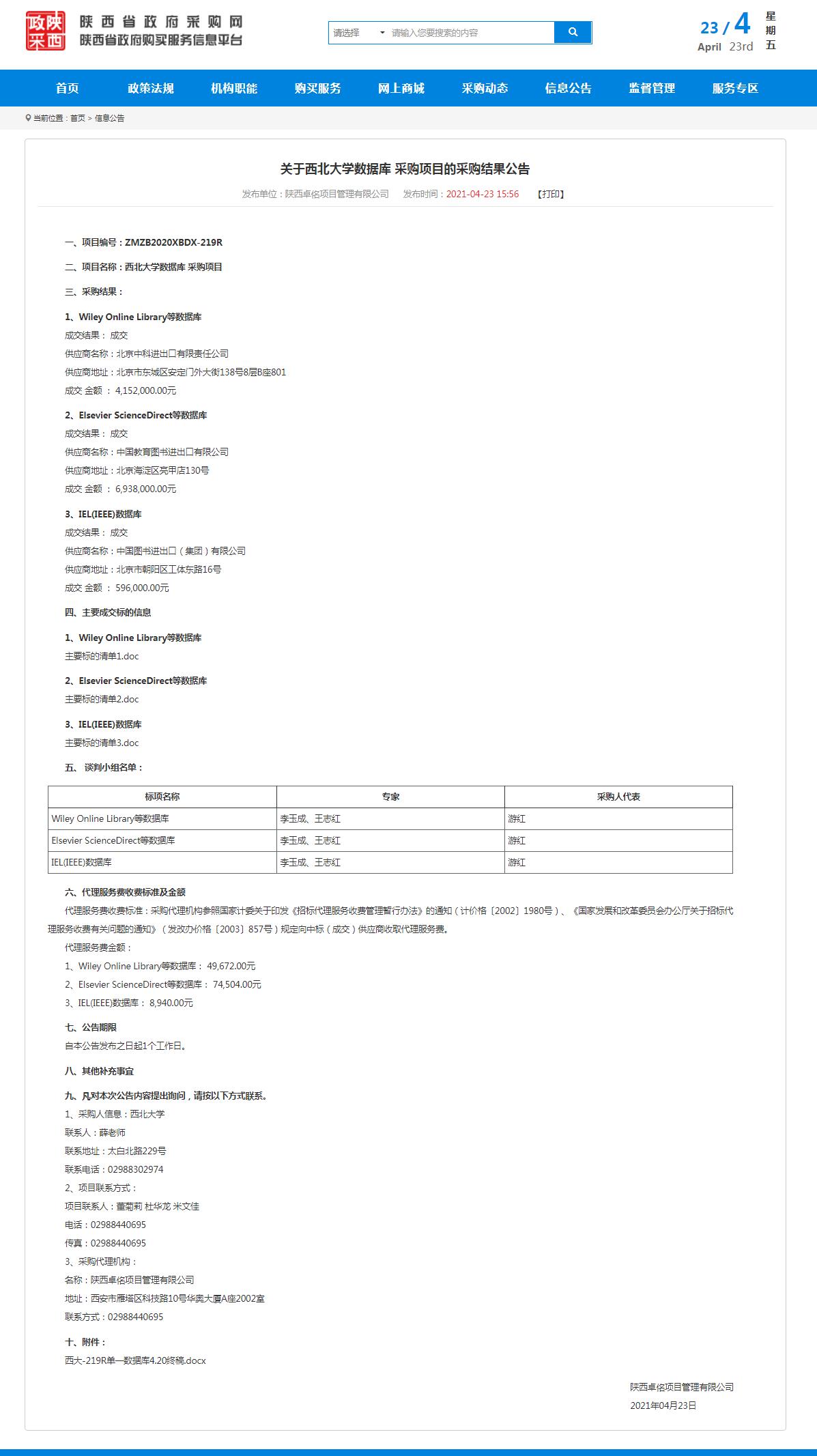 关于九游会在线登录官网数据库采购项目的采购结果公告