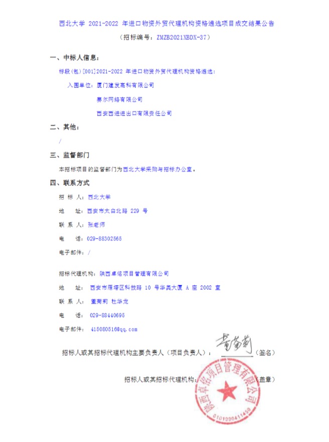 九游会在线登录官网2021-2022年进口物资外贸代理机构资格遴选项目成交结果公告