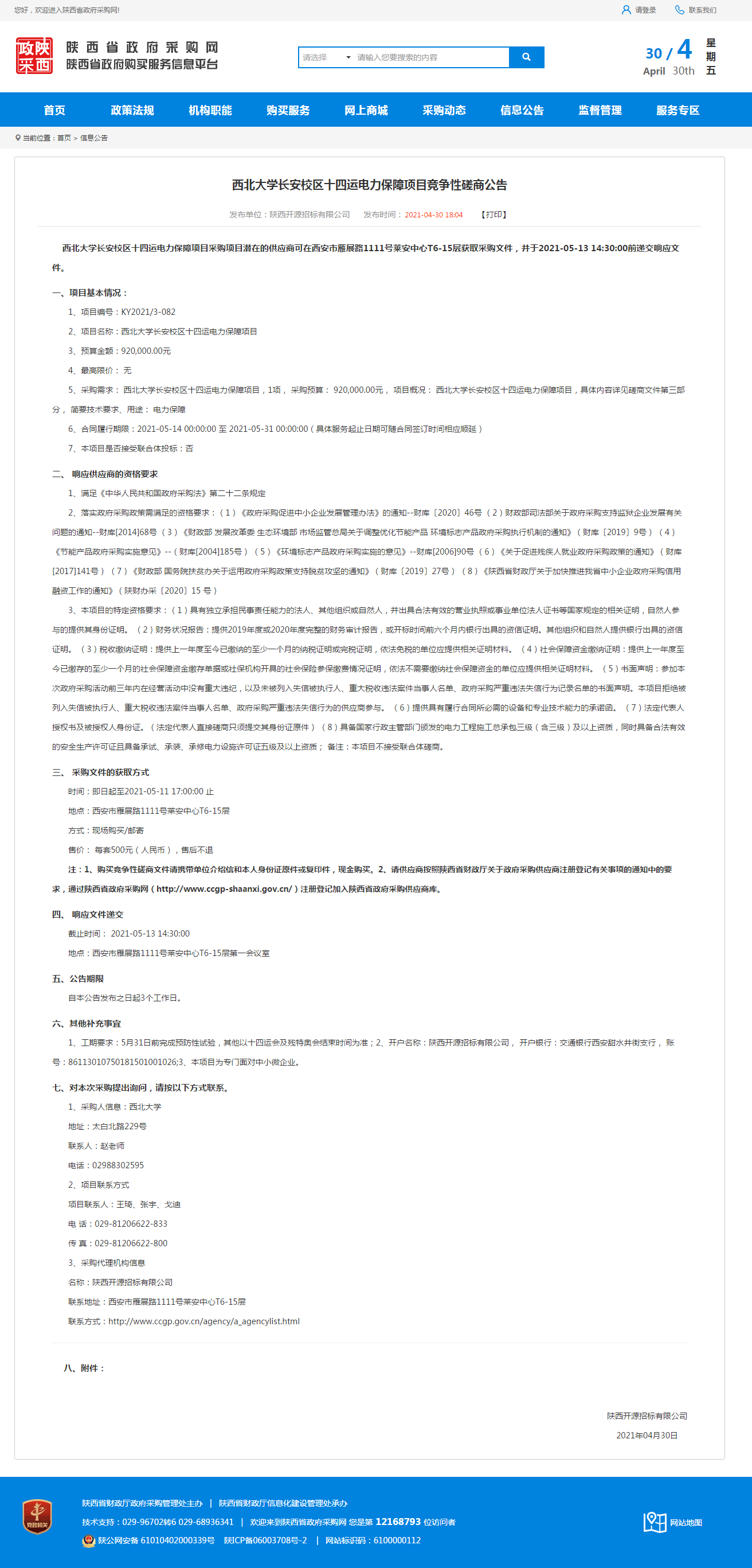 九游会在线登录官网长安校区十四运电力保障项目竞争性磋商公告