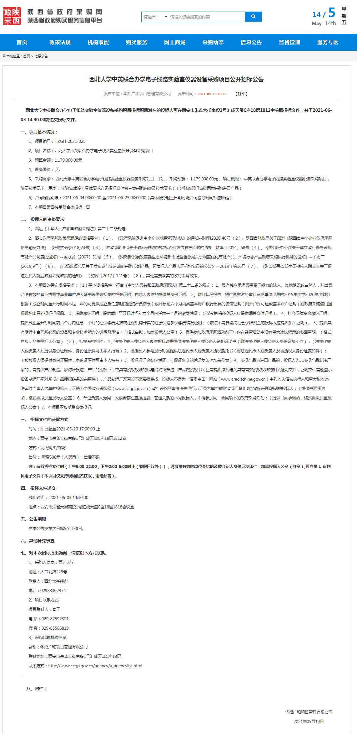 九游会在线登录官网中英联合办学电子线路实验室仪器设备采购项目公开招标公告