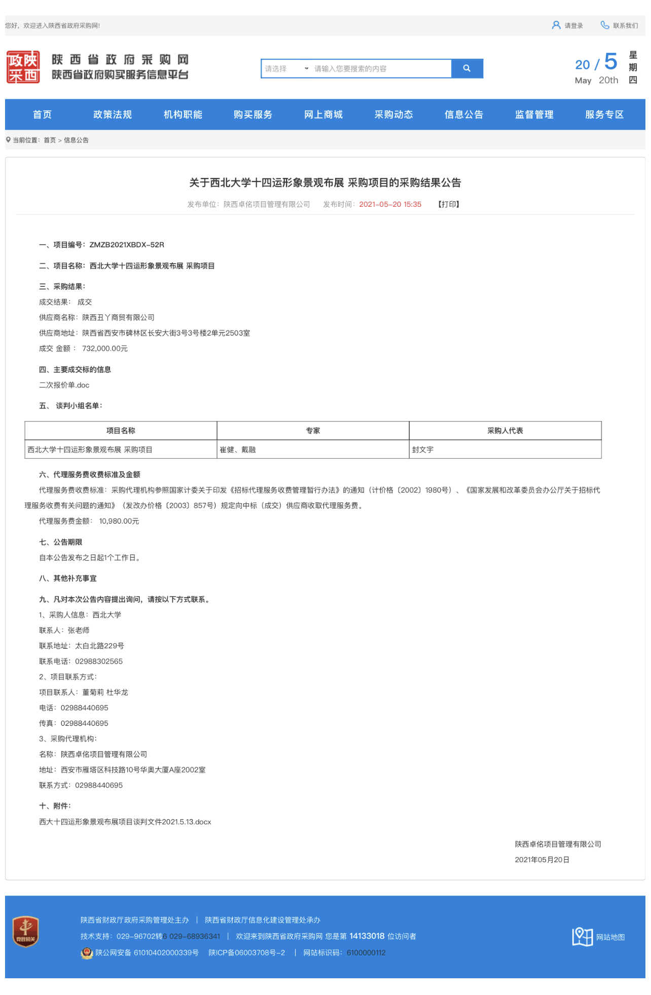 关于九游会在线登录官网十四运形象景观布展采购项目的采购结果公告