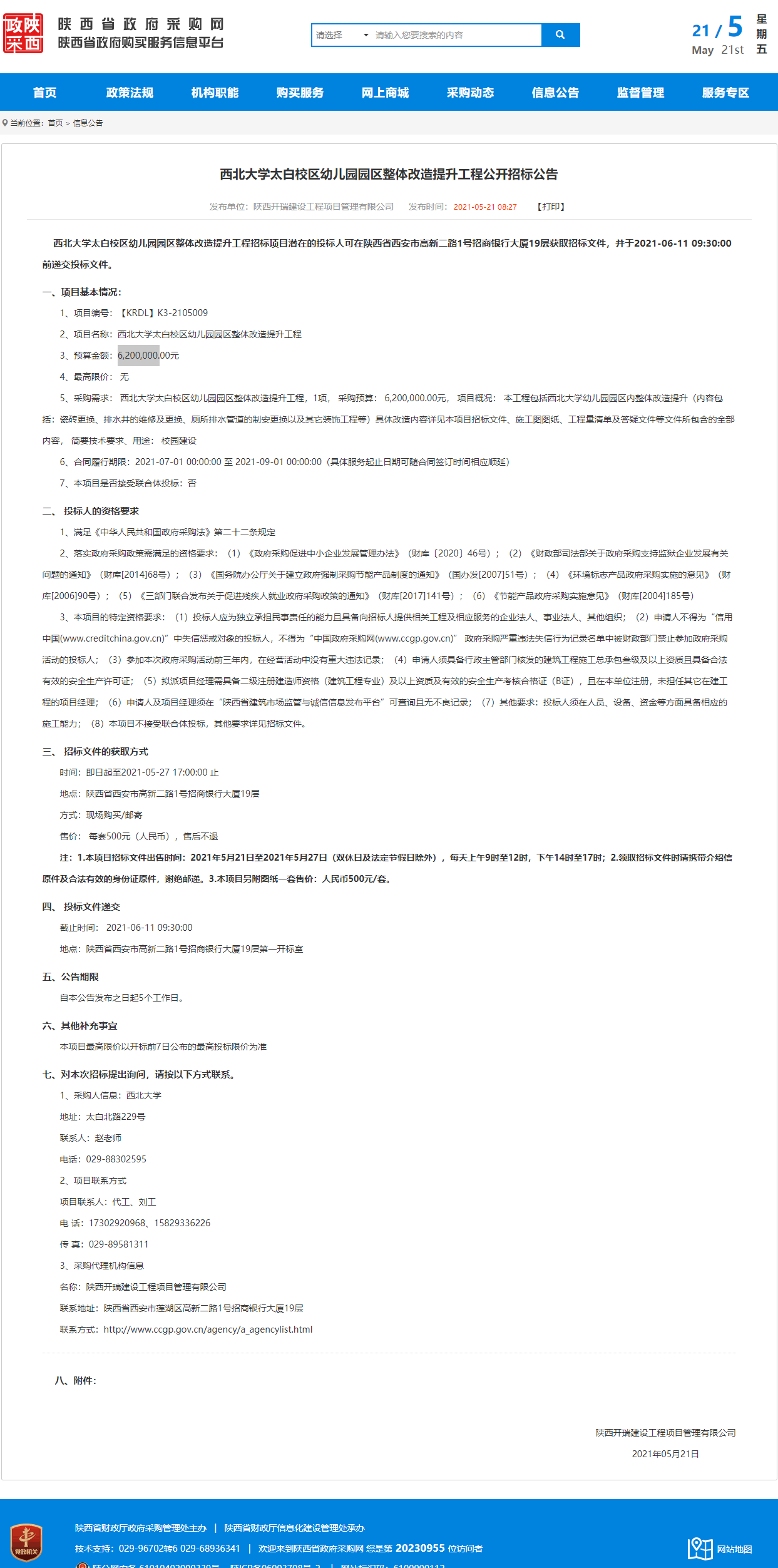 九游会在线登录官网太白校区幼儿园园区整体改造提升工程公开招标公告