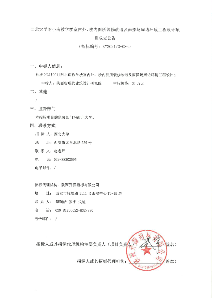 九游会在线登录官网附小南教学楼室内外、楼内厕所装修改造及南操场周边环境工程设计项目成交公告