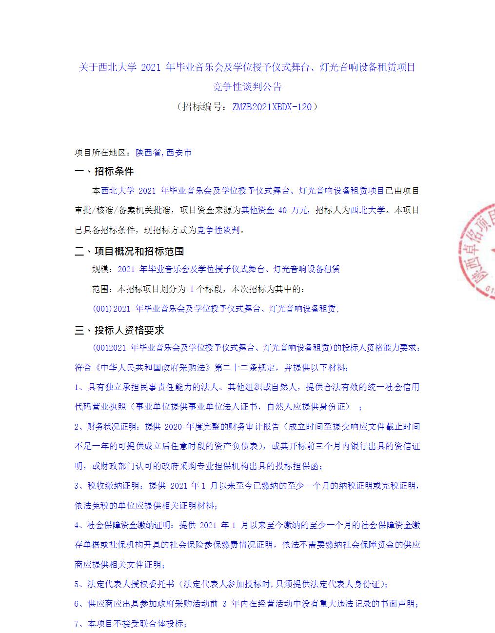 九游会在线登录官网2021年毕业音乐会及学位授予仪式舞台、灯光音响设备租赁项目竞争性谈判公告
