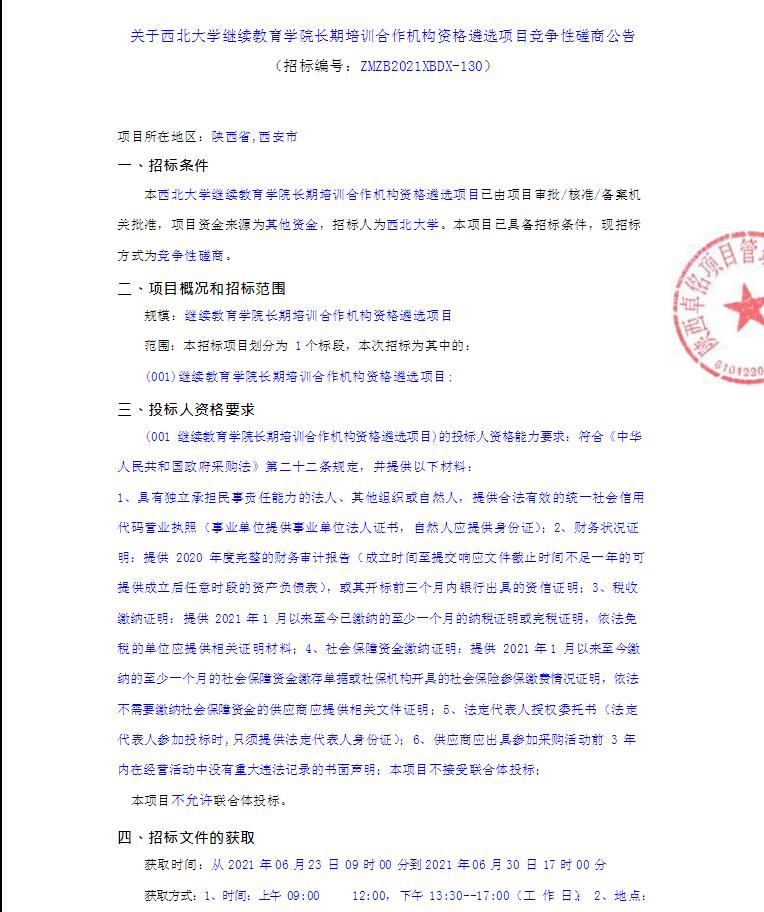 九游会在线登录官网继续教育学院长期培训合作机构资格遴选项目竞争性磋商公告
