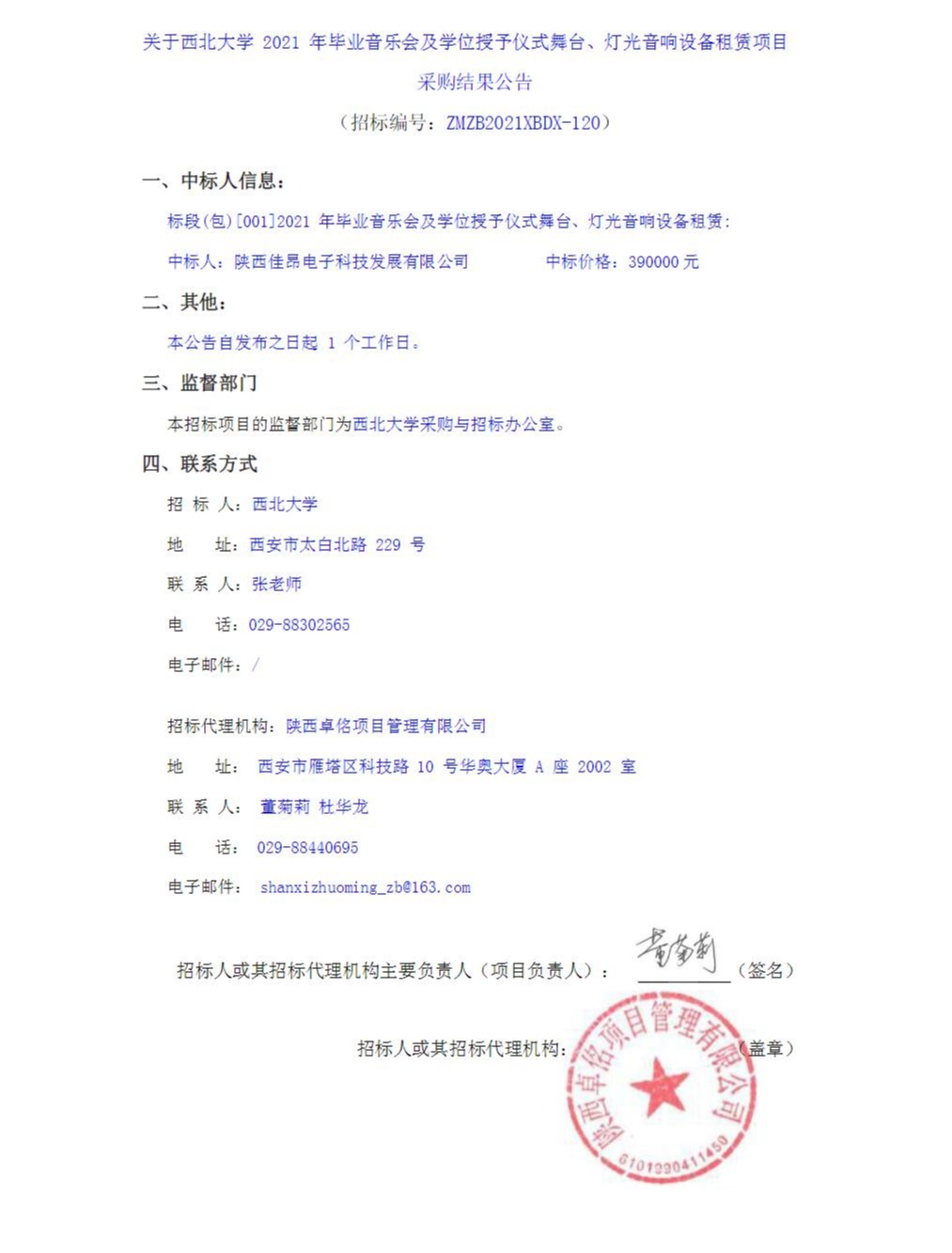 关于九游会在线登录官网2021年毕业音乐会及学位授予仪式舞台、灯光音响设备租赁项目采购结果公告
