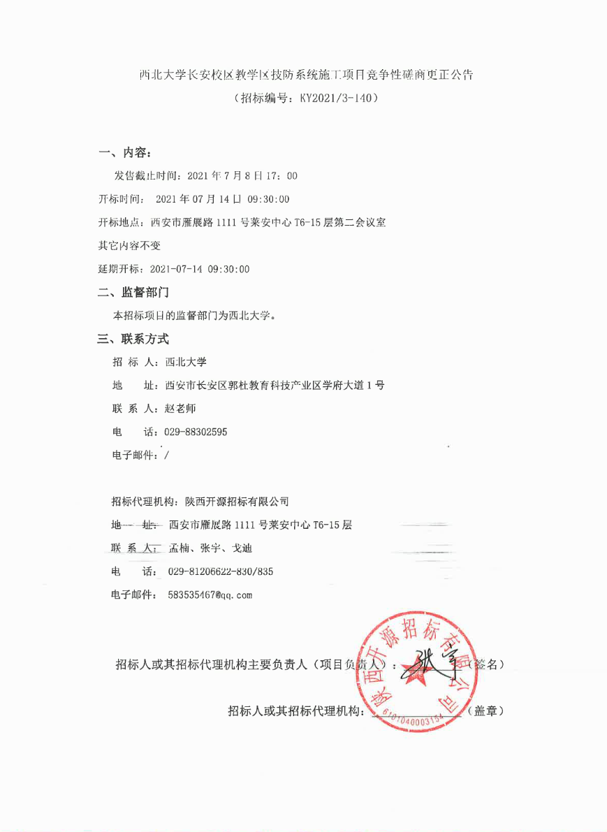 九游会在线登录官网长安校区教学区技防系统施工项目竞争性磋商更正公告