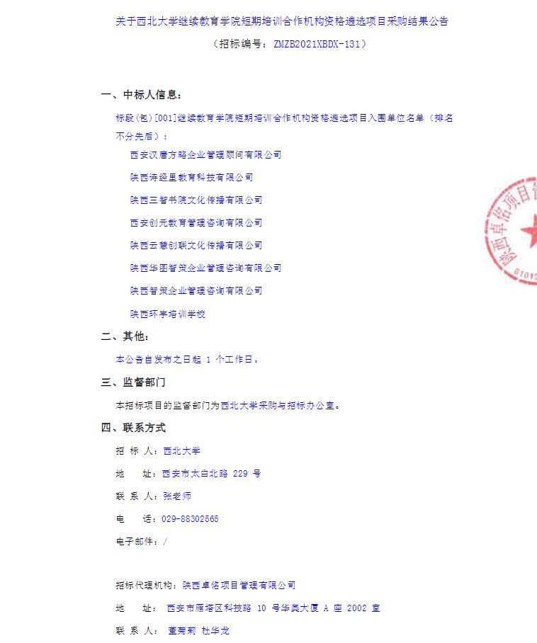 关于九游会在线登录官网继续教育学院长期培训合作机构资格遴选项目采购结果公告