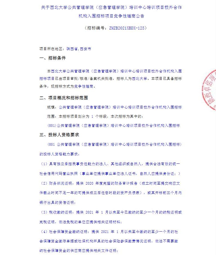 关于九游会在线登录官网公共管理学院(应急管理学院)培训中心培训项目校外合作机构入围招标项目竞争性磋商公告