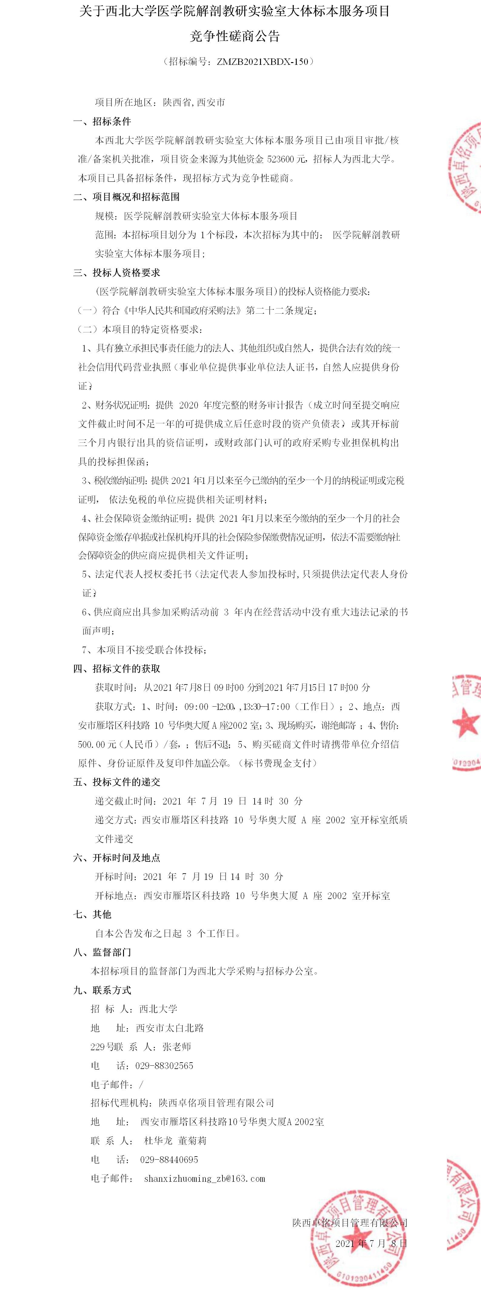 关于九游会在线登录官网医学院解剖教研实验室大体标本服务项目竞争性磋商公告