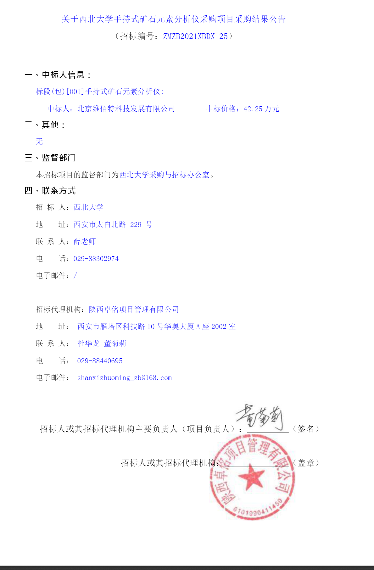 关于九游会在线登录官网手持式矿石元素分析仪采购项目采购结果公告