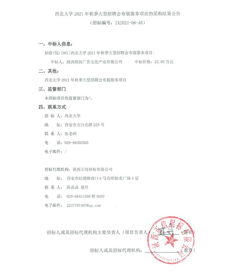 关于九游会在线登录官网2021年秋季大型招聘会布展服务项目的采购结果公告