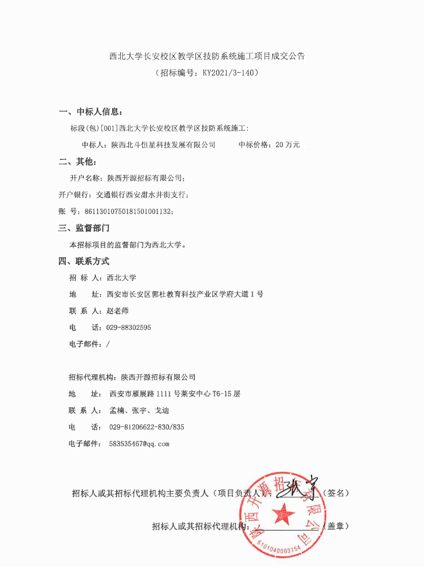 九游会在线登录官网长安校区教学区技防系统施工项目成交公告