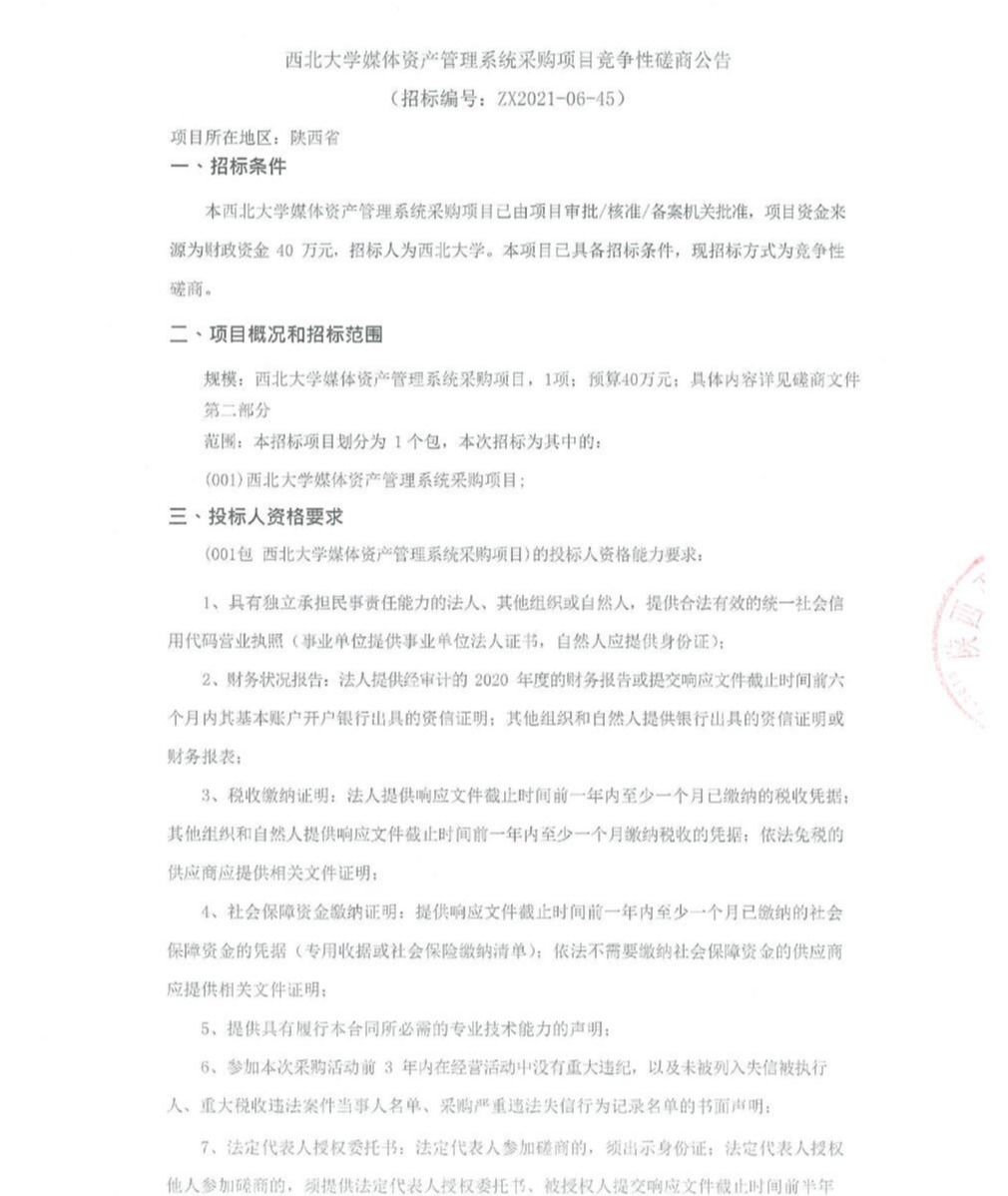九游会在线登录官网媒体资产管理系统采购项目竞争性磋商公告