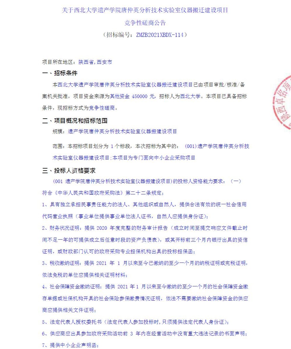 关于九游会在线登录官网遗产学院唐仲英分析技术实验室仪器搬迁建设项目竞争性磋商公告