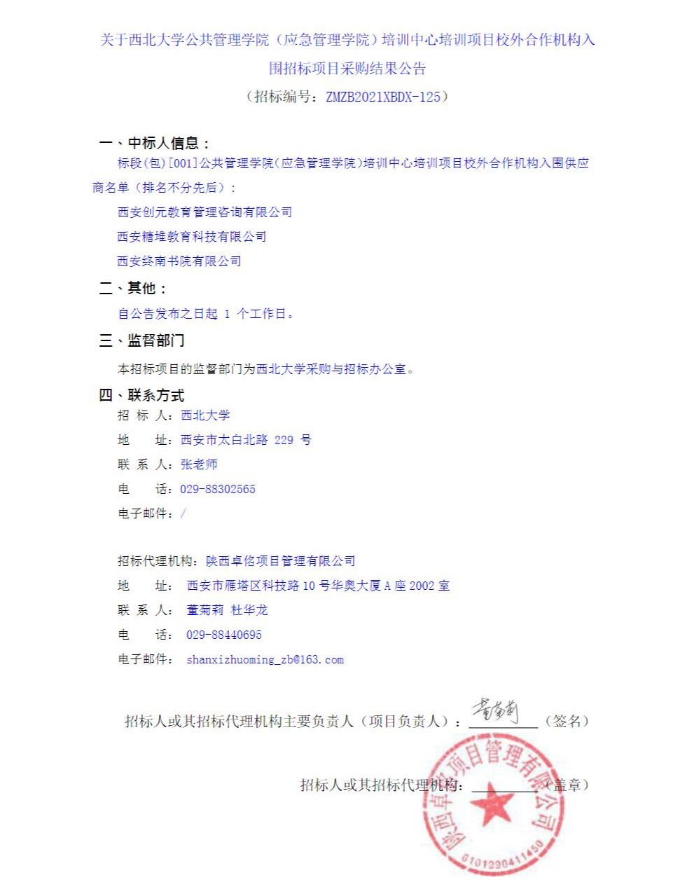 关于九游会在线登录官网公共管理学院(应急管理学院)培训中心培训项目校外合作机构入围招标项目采购结果公告