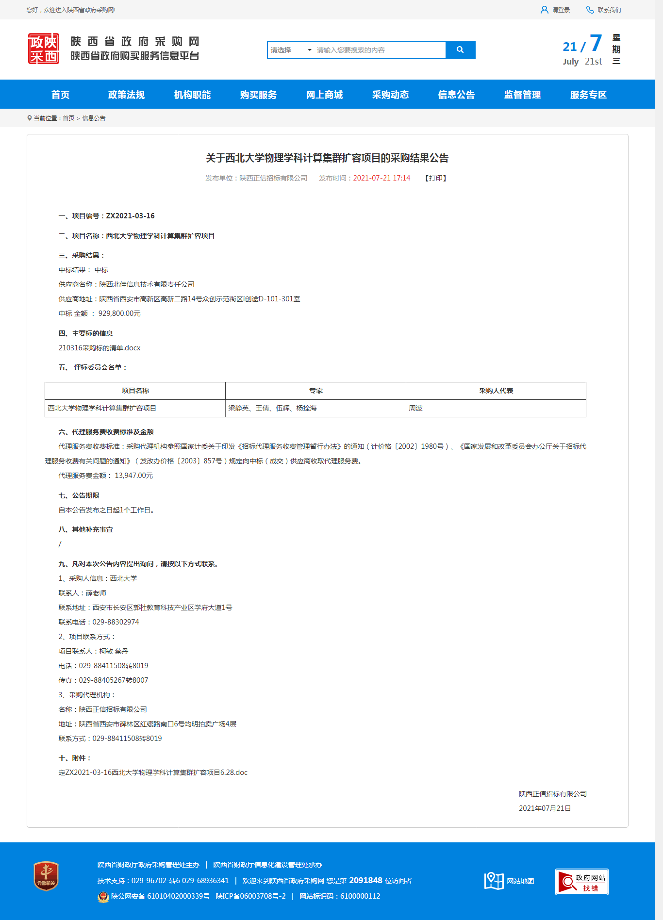 关于九游会在线登录官网物理学科计算集群扩容项目的采购结果公告 作者: 编辑:采购与招标办公室 时间:2021-07-21 原公告地址:http://www.ccgp-shaanxi.gov.cn/notice/noticeDetail.do?noticeguid=8a85be347a795e58017ac8539a9339ac