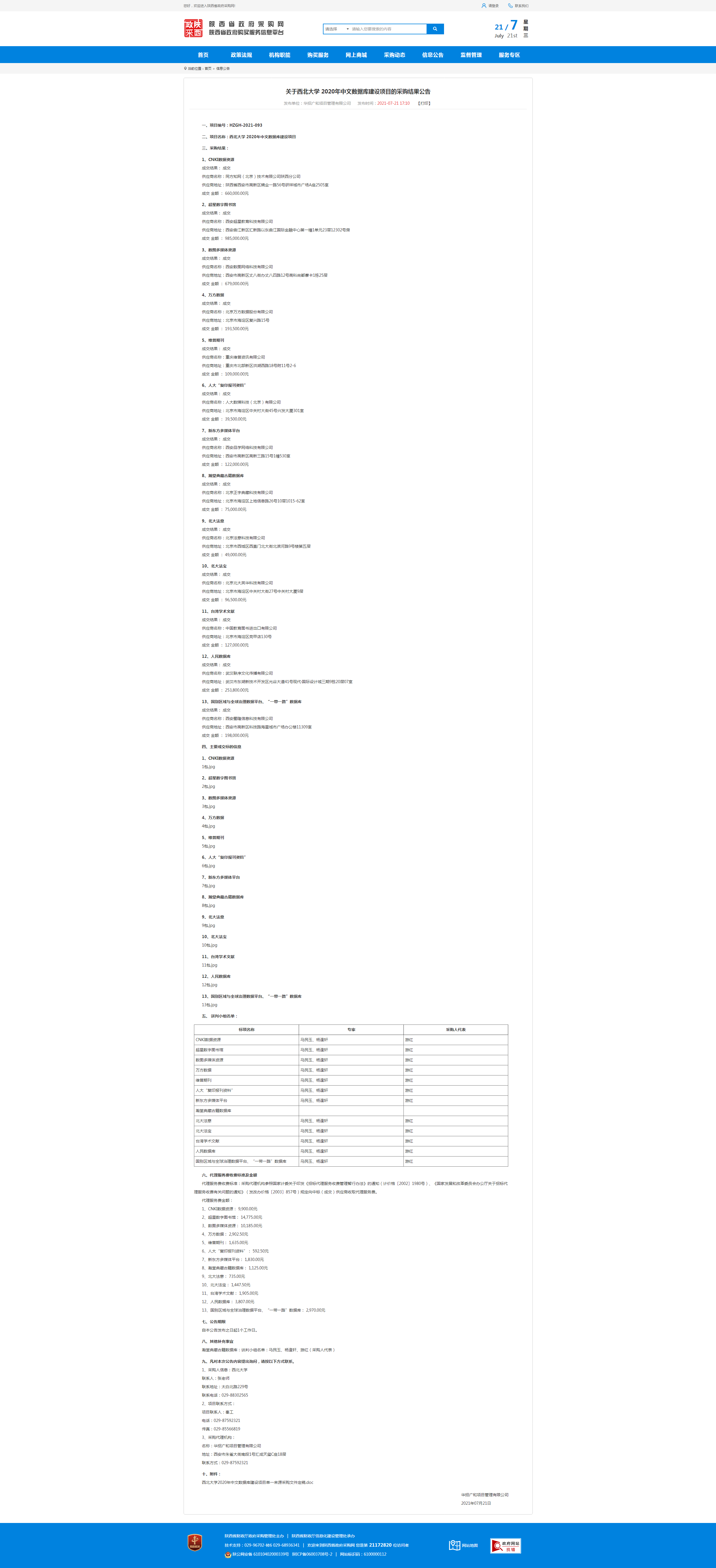 关于九游会在线登录官网2020年中文数据库建设项目的采购结果公告