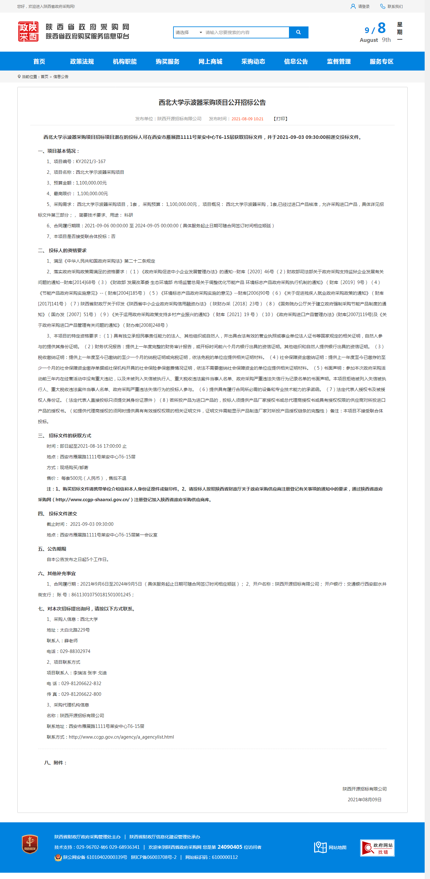 九游会在线登录官网示波器采购项目公开招标公告 作者: 编辑:采购与招标办公室 时间:2021-08-09 原公告地址:http://www.ccgp-shaanxi.gov.cn/notice/noticeDetail.do?noticeguid=8a85be347b04610d017b28a3aa0f0939