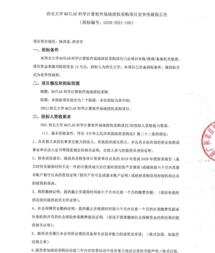 关于九游会在线登录官网MATLAB科学计算软件场地授权采购项目竞争性磋商公告