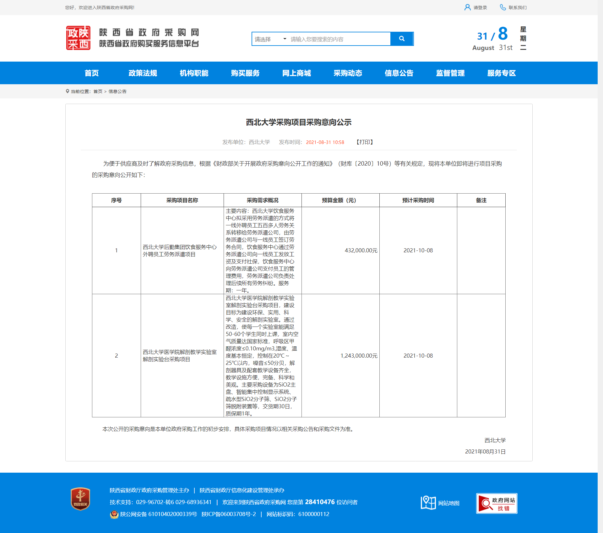 九游会在线登录官网采购项目采购意向公示 作者: 编辑:采购与招标办公室 时间:2021-08-31 原公告地址:http://www.ccgp-shaanxi.gov.cn/notice/noticeDetail.do?noticeguid=8a85be337b0460f8017b9a22be817f9f