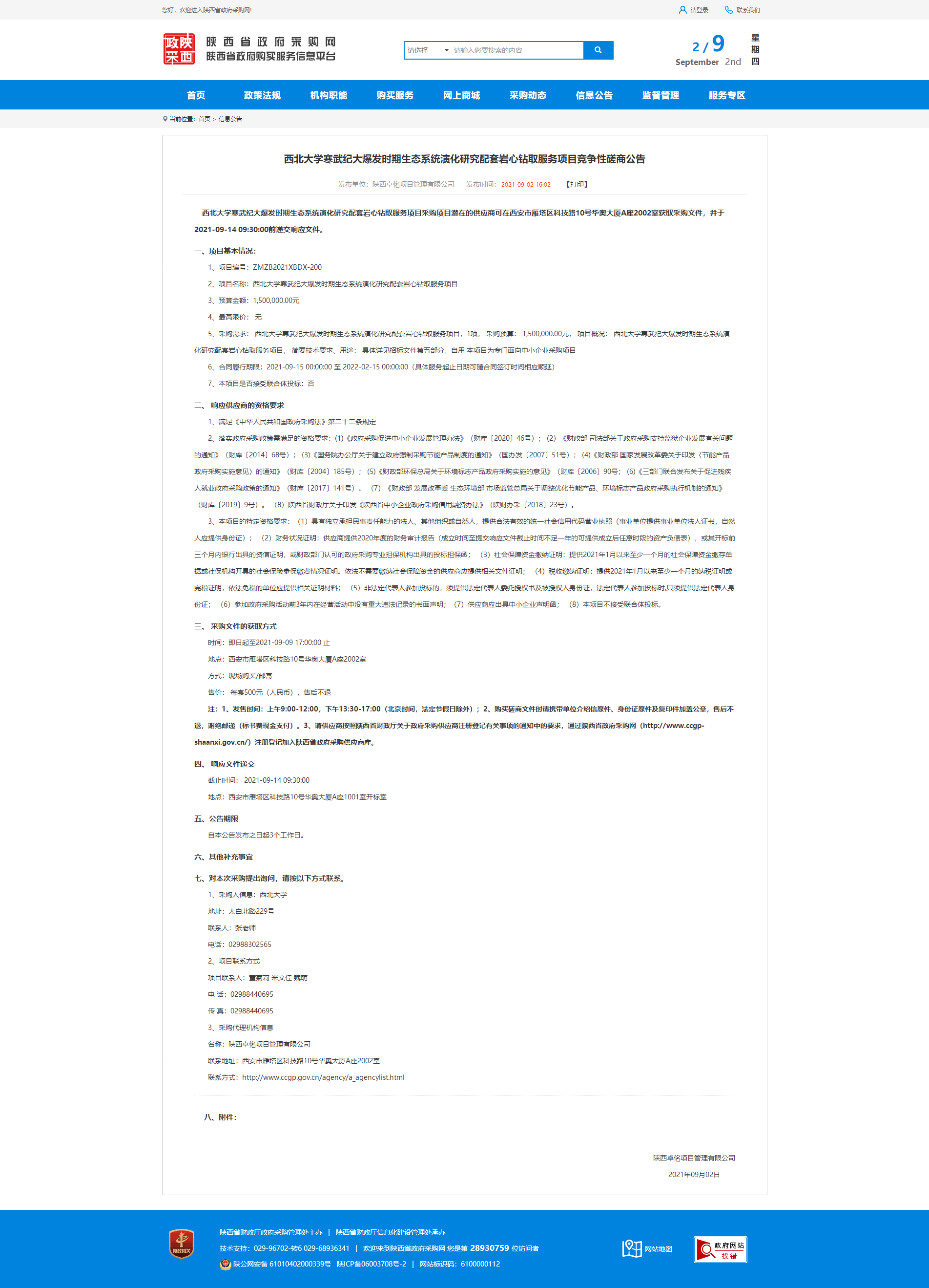 九游会在线登录官网寒武纪大爆发时期生态系统演化研究配套岩心钻取服务项目竞争性磋商公告
