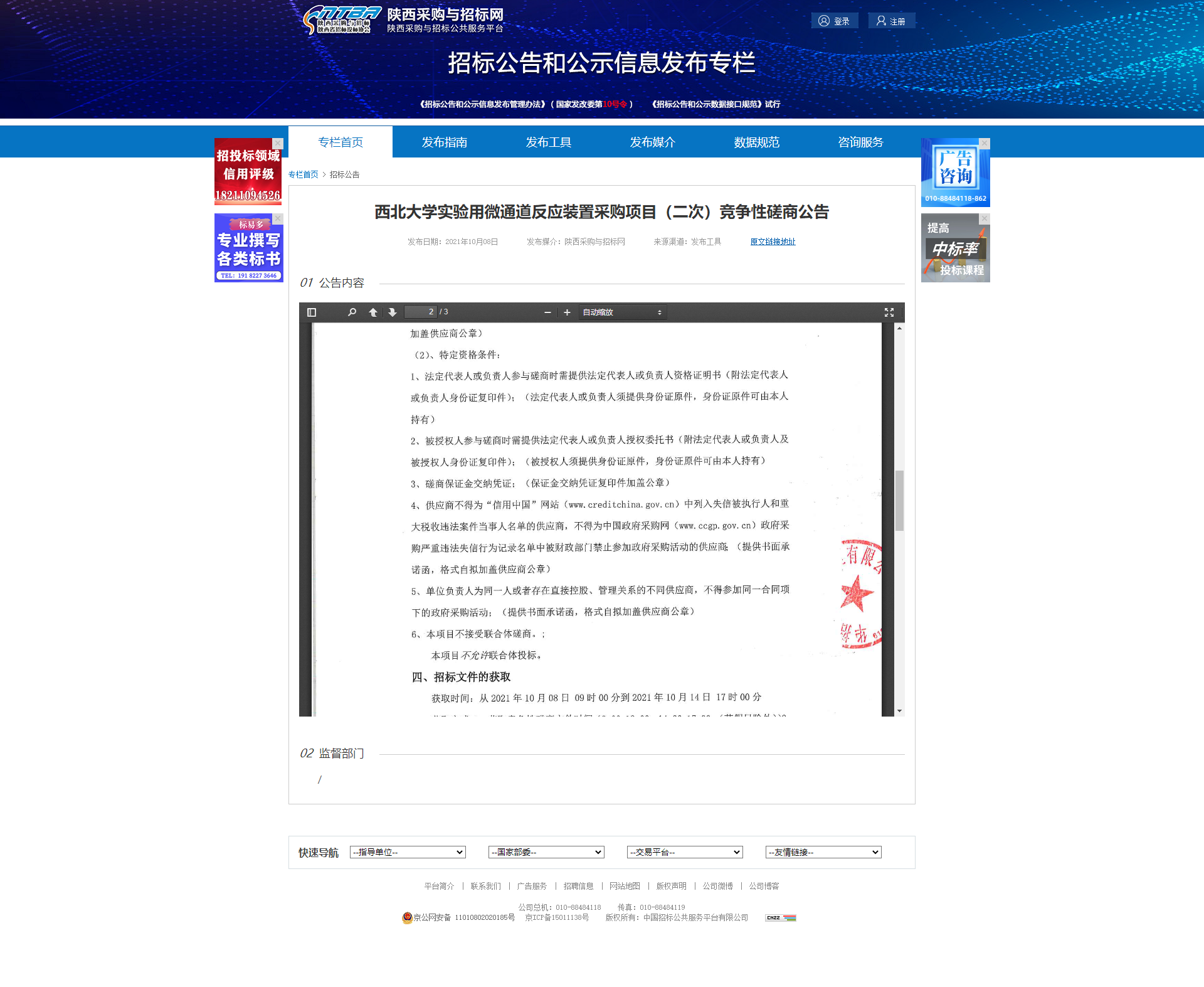 九游会在线登录官网实验用微通道反应装置采购项目(二次)竞争性磋商公告 作者: 编辑:采购与招标办公室 时间:2021-10-08 原公告地址:http://bulletin.sntba.com/biddingBulletin/2021-10-08/350195.html