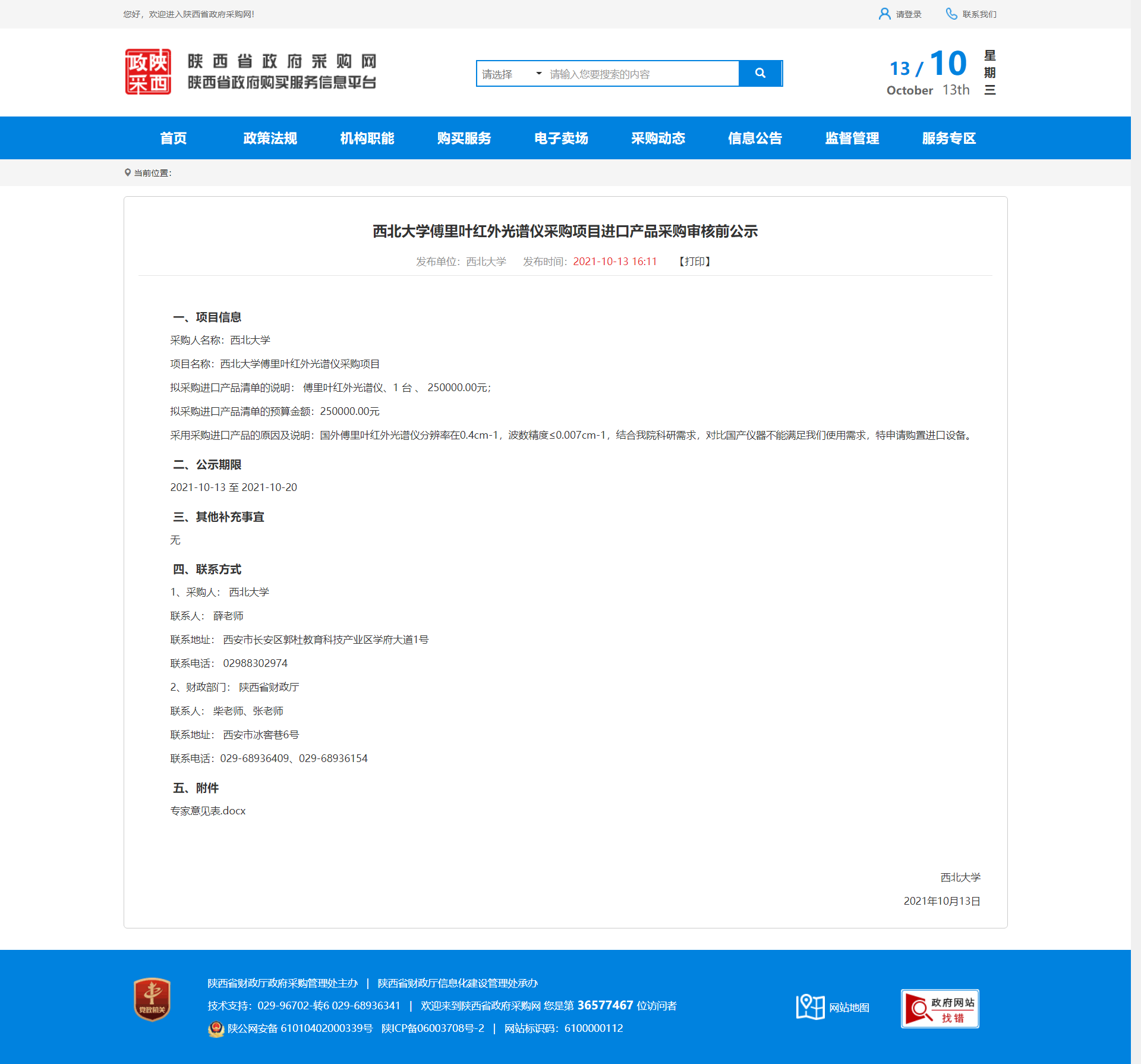 九游会在线登录官网傅里叶红外光谱仪采购项目进口产品采购审核前公示 作者: 编辑:采购与招标办公室 时间:2021-10-13 原公告地址:http://www.ccgp-shaanxi.gov.cn/notice/noticeDetail.do?noticeguid=8a85be327c20d508017c78afc0e74db6