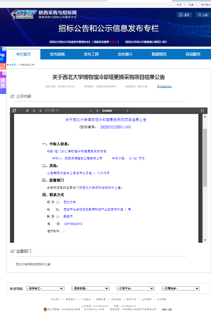 关于九游会在线登录官网博物馆冷却塔更换采购项目结果公告 作者: 编辑:薛利娟 时间:2022-07-21 原公告链接:http://bulletin.sntba.com/resultBulletin/2022-07-20/450093.html