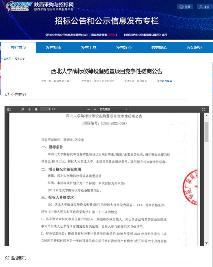 九游会在线登录官网酶标仪等设备购置项目竞争性磋商公告 作者: 编辑:采购与招标办公室 时间:2022-07-26 原公告链接:http://bulletin.sntba.com/biddingBulletin/2022-07-26/452921.html