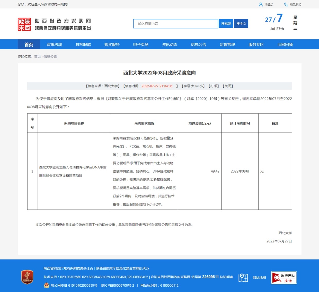九游会在线登录官网2022年08月政府采购意向 作者: 编辑:采购与招标办公室 时间:2022-07-27 原公告链接:http://www.ccgp-shaanxi.gov.cn/freecms/site/shaanxi/ggxx/info/2022/8a69c983823e8d3701823fa8fcc44fa0.html?noticeType=59¬iceId=2deaf510-0db1-11ed-9a8e-08c0eb20c666