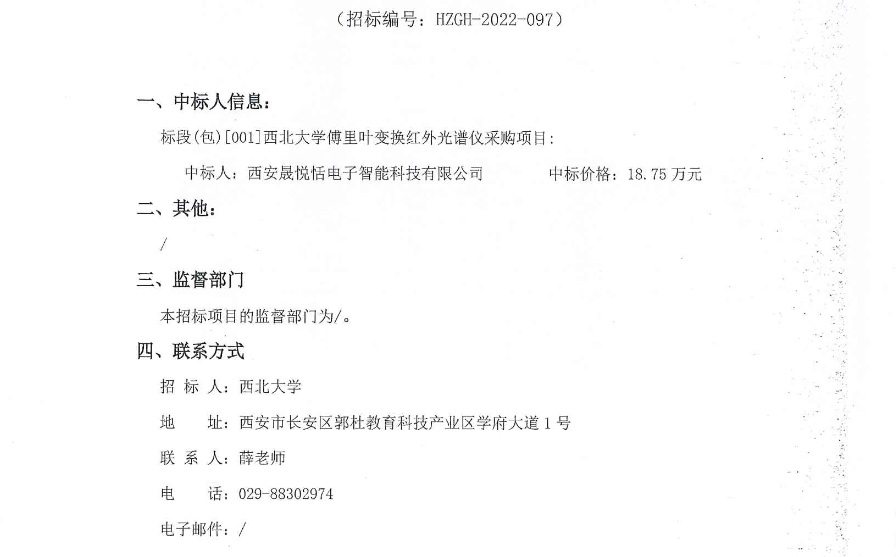 九游会在线登录官网傅里叶变换红外光谱仪采购项目中标结果公示 作者: 编辑:采购与招标办公室 时间:2022-11-23 原公告链接:http://bulletin.sntba.com/resultBulletin/2022-11-23/502120.html