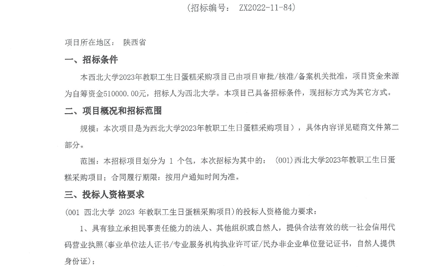 九游会在线登录官网2023年教职工生日蛋糕采购项目竞争性磋商公告 作者: 编辑:采购与招标办公室 时间:2022-11-30 原公告链接:http://bulletin.sntba.com/biddingBulletin/2022-11-30/505076.html
