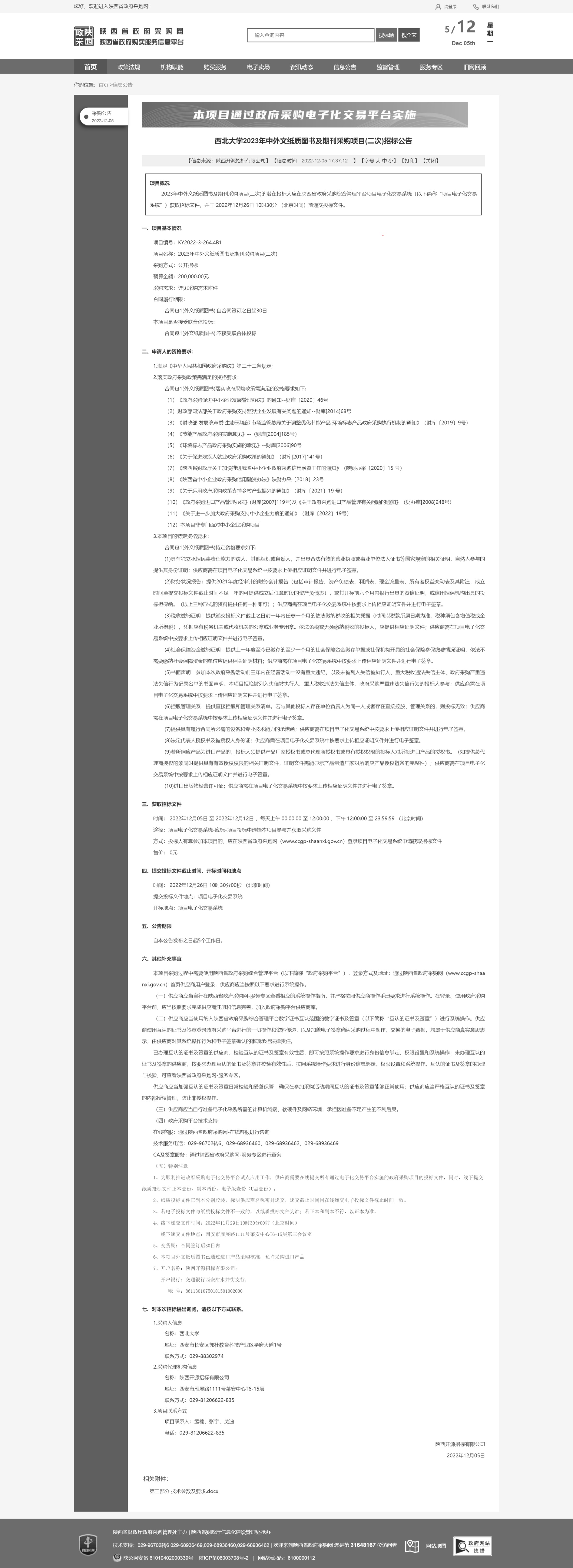 九游会在线登录官网2023年中外文纸质图书及期刊采购项目(二次)招标公告 作者: 编辑:采购与招标办公室 时间:2022-12-05 原公告链接:http://www.ccgp-shaanxi.gov.cn/freecms/site/shaanxi/ggxx/info/2022/8a69c4c88405ac2f0184e158100f1f34.html?noticeType=001011¬iceId=14b89779-7481-11ed-9a8e-08c0eb20c666 变更公告链接:http://www.ccgp-shaanxi.gov.cn/freecms/site/shaanxi/ggxx/info/2022/8a69c1948405afd90184e1f2cad177e9.html?noticeType=001031¬iceId=9c8f3b6f-748e-11ed-9a8e-08c0eb20c666