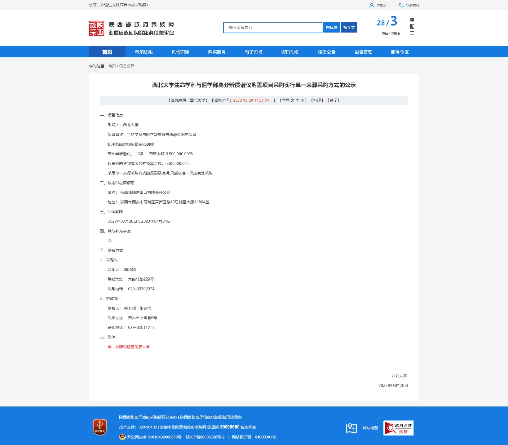 九游会在线登录官网生命学科与医学部高分辨质谱仪购置项目采购实行单一来源采购方式的公示 作者: 编辑:采购与招标办公室 时间:2023-03-28 原公告链接:http://www.ccgp-shaanxi.gov.cn/freecms/site/shaanxi/ggxx/info/2023/8a69c2018721d9cb018726d4460d78d5.html?noticeType=001051¬iceId=9b938696-cd4b-11ed-9a8e-08c0eb20c666