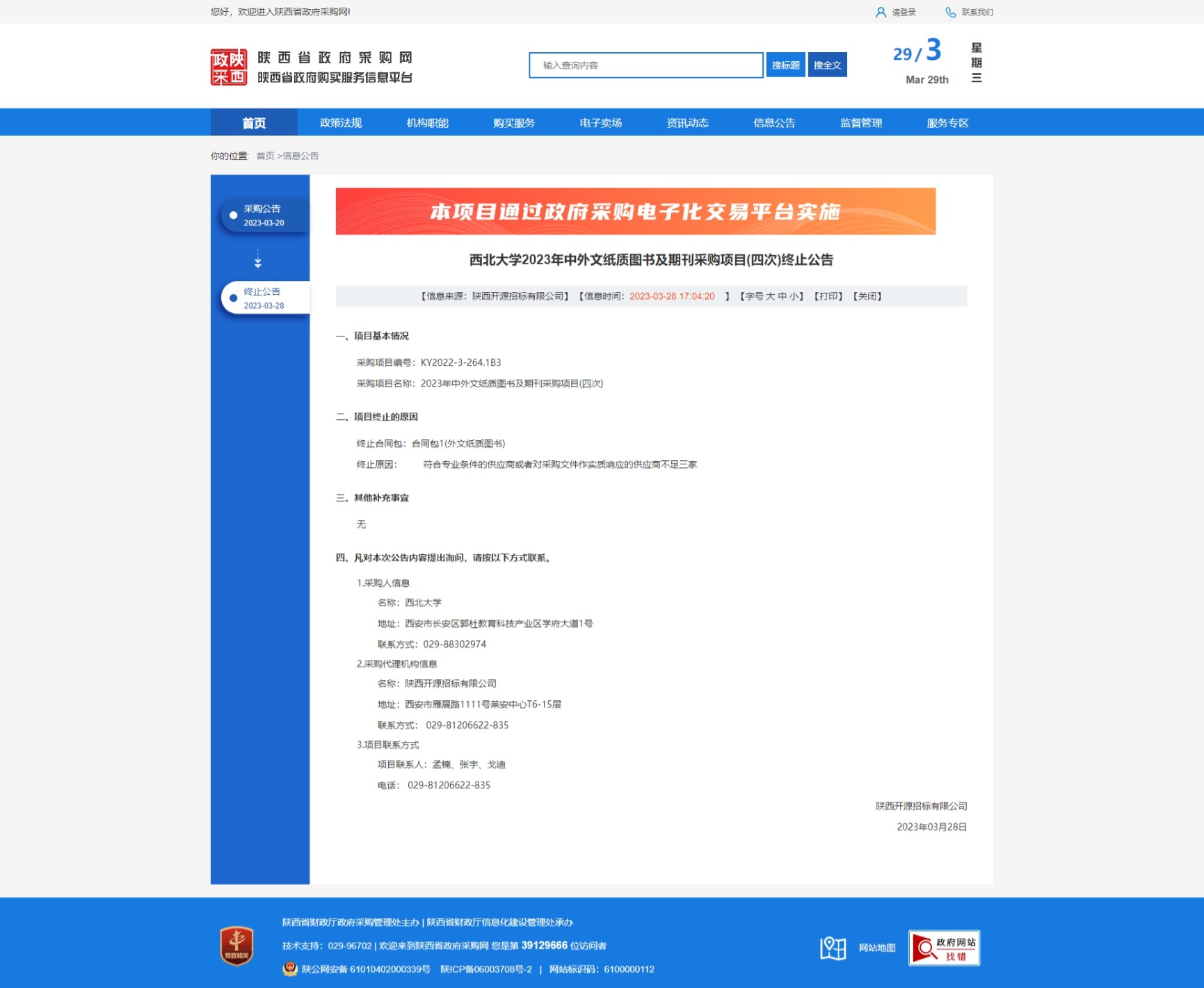 九游会在线登录官网2023年中外文纸质图书及期刊采购项目(四次)终止公告 作者: 编辑:采购与招标办公室 时间:2023-03-29 原公告链接:http://www.ccgp-shaanxi.gov.cn/freecms/site/shaanxi/ggxx/info/2023/8a69c402865ce80c0187274b628268bb.html?noticeType=001004¬iceId=705c8589-cd48-11ed-9a8e-08c0eb20c666
