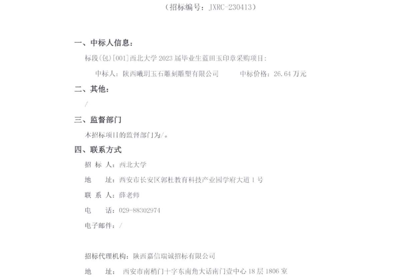 九游会在线登录官网2023届毕业生蓝田玉印章采购项目成交结果公告 作者: 编辑:采购与招标办公室 时间:2023-05-05 原公告链接:http://bulletin.sntba.com/resultBulletin/2023-05-05/554805.html