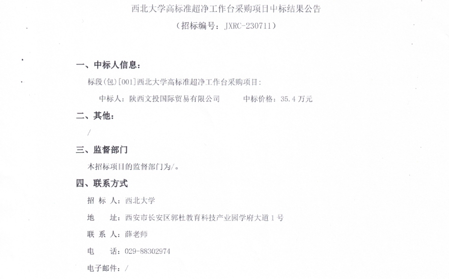 九游会在线登录官网高标准超净工作台采购项目中标结果公告 作者: 编辑:采购与招标办公室 时间:2023-09-07 原公告链接:http://bulletin.sntba.com/resultBulletin/2023-09-07/651529.html