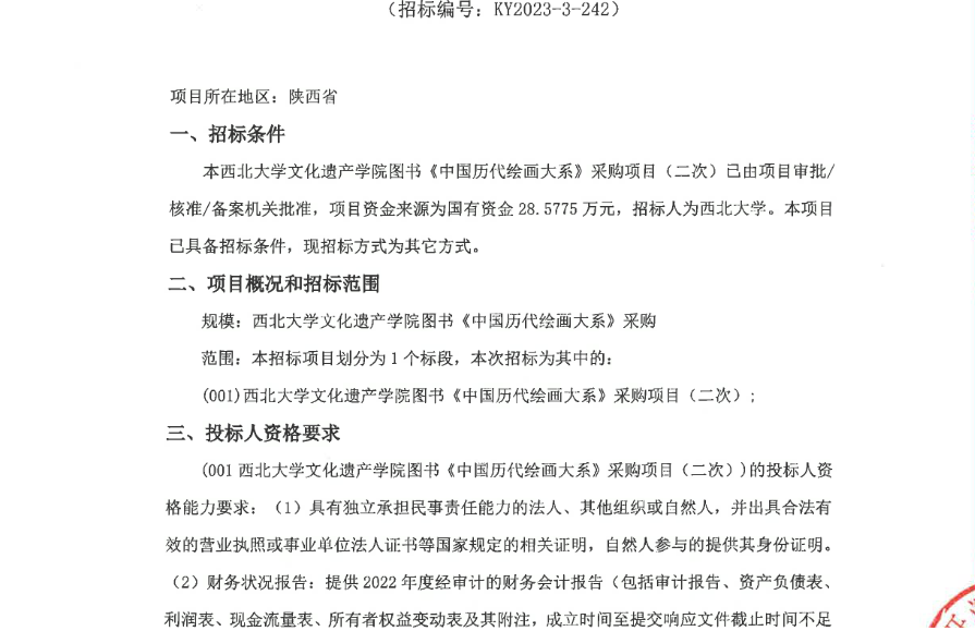 九游会在线登录官网文化遗产学院图书《中国历代绘画大系》采购项目(二次)竞争性谈判公告 作者: 编辑:采购与招标办公室 时间:2023-09-22 原公告链接:http://bulletin.sntba.com/biddingBulletin/2023-09-21/678342.html