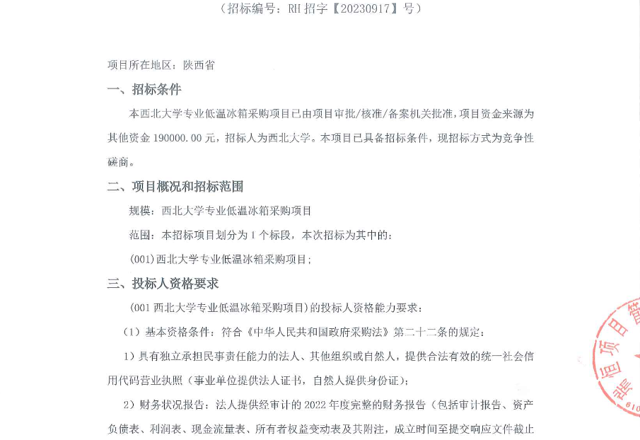 九游会在线登录官网专业低温冰箱采购项目竞争性磋商公告 作者: 编辑:采购与招标办公室 时间:2023-09-22 原公告链接:http://bulletin.sntba.com/biddingBulletin/2023-09-22/680755.html
