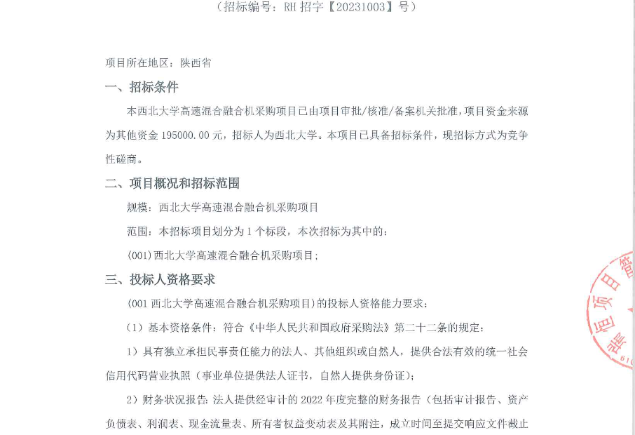 九游会在线登录官网高速混合融合机采购项目竞争性磋商公告 作者: 编辑:采购与招标办公室 时间:2023-10-18 原公告链接:http://bulletin.sntba.com/biddingBulletin/2023-10-17/735312.html