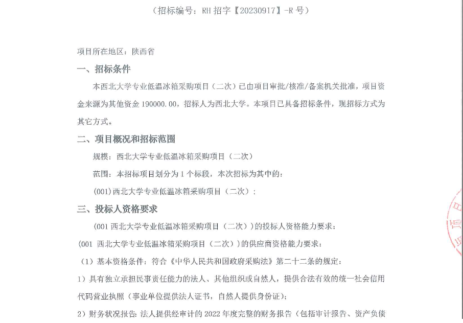 九游会在线登录官网专业低温冰箱采购项目(二次)竞争性磋商公告 作者: 编辑:采购与招标办公室 时间:2023-10-25 原公告链接:http://bulletin.sntba.com/biddingBulletin/2023-10-24/752921.html
