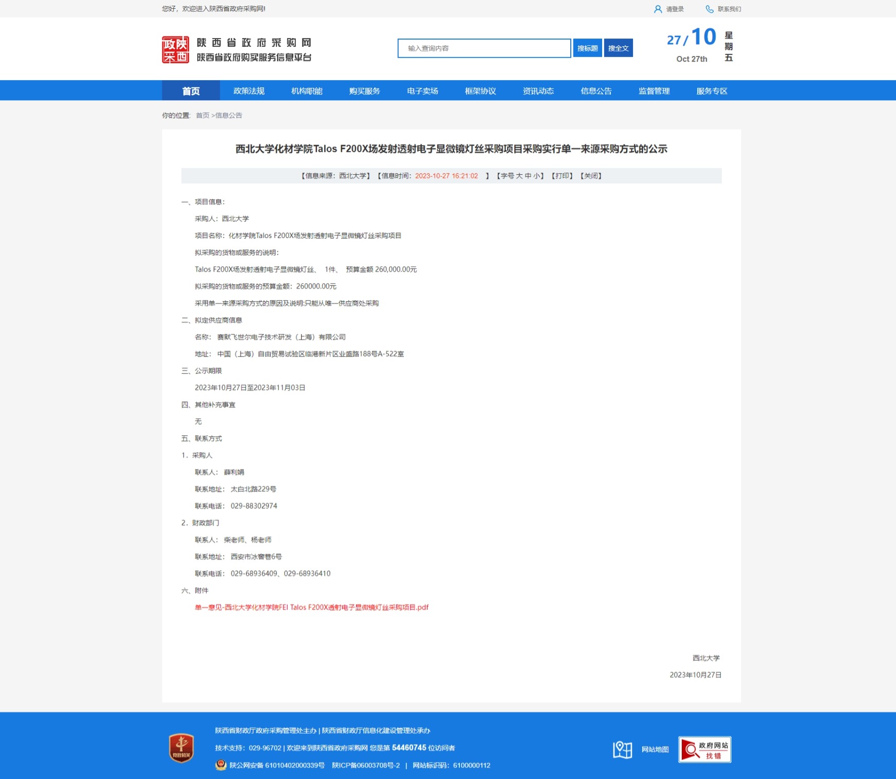 九游会在线登录官网化材学院Talos F200X场发射透射电子显微镜灯丝采购项目采购实行单一来源采购方式的公示 作者: 编辑:采购与招标办公室 时间:2023-10-27 原公告链接:http://www.ccgp-shaanxi.gov.cn/freecms/site/shaanxi/ggxx/info/2023/8a69c1288b6f04ea018b7035835c48ea.html?noticeType=001051¬iceId=11c24886-74a3-11ee-9a8e-08c0eb20c666