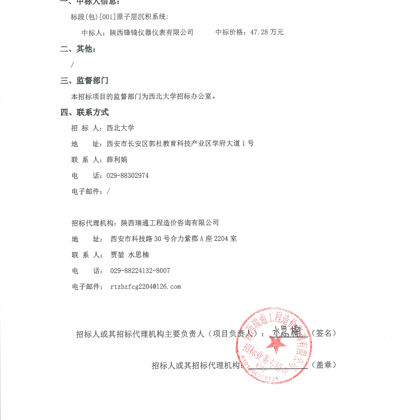 九游会在线登录官网原子层沉积系统采购项目成交结果公告 作者: 编辑:薛利娟 时间:2024-12-05 原公告链接:http://bulletin.sntba.com/resultBulletin/2024-12-05/1993564.html
