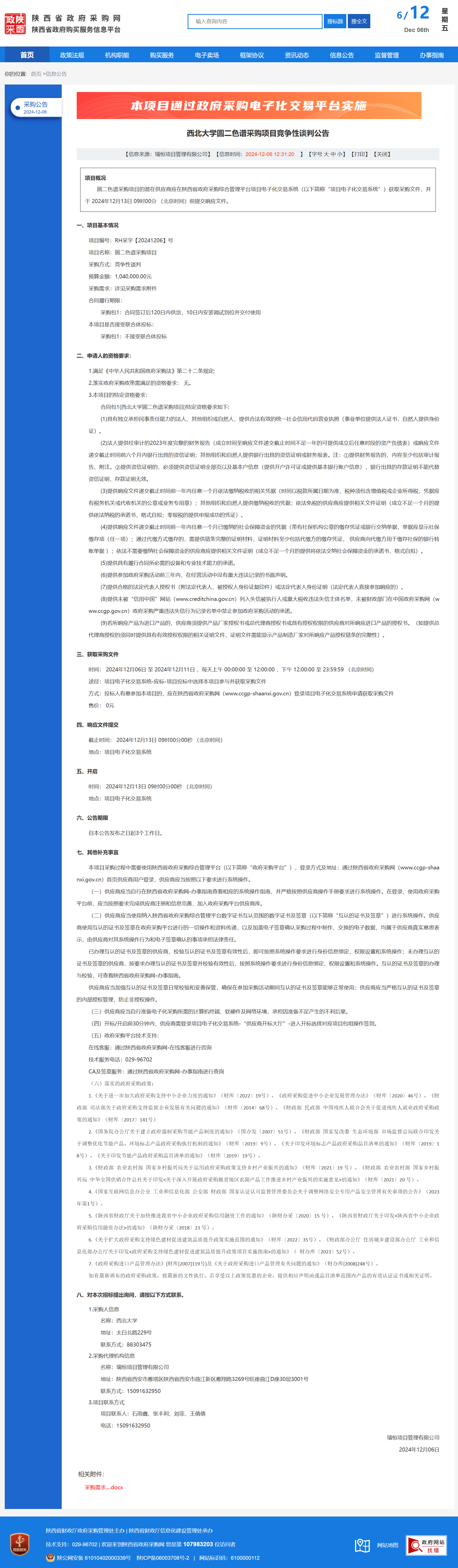 九游会在线登录官网圆二色谱采购项目竞争性谈判公告 作者:采购与招标办公室 编辑: 时间:2024-12-06 原公告链接:https://www.ccgp-shaanxi.gov.cn/freecms/site/shaanxi/ggxx/info/2024/8a69c44e9218572b01939a34451055bc.html?noticeType=001013¬iceId=8d0f9f1f-b38c-11ef-8063-08c0eb20c666