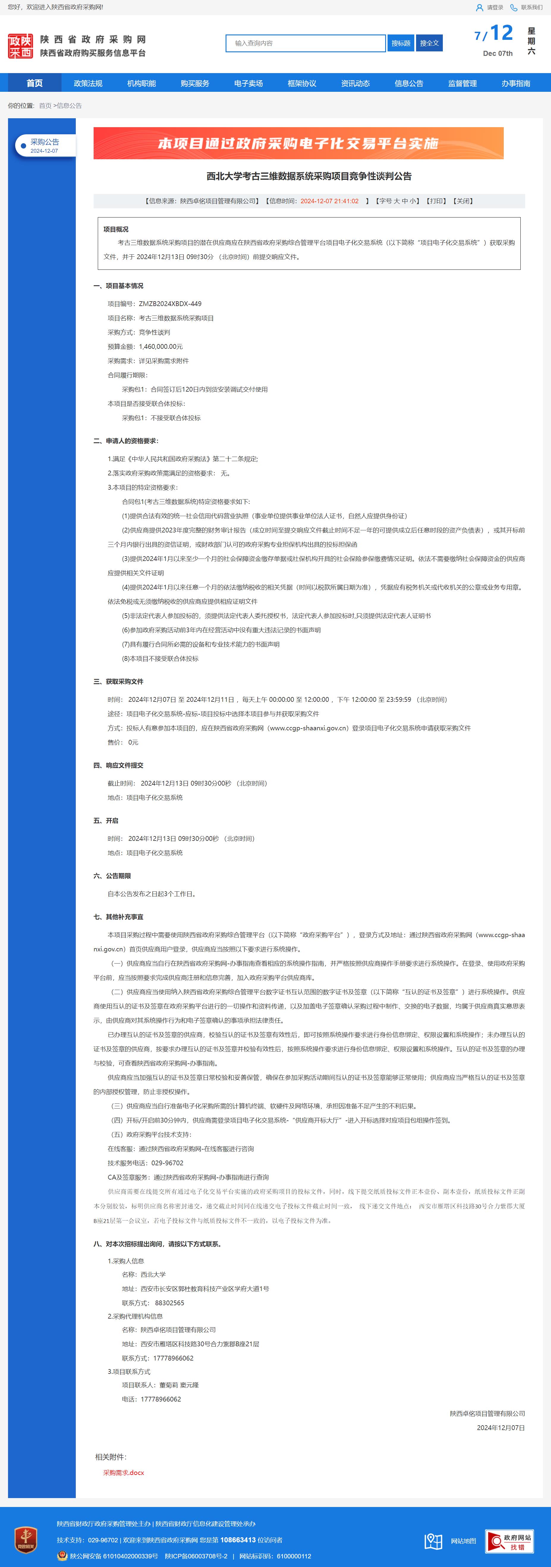 九游会在线登录官网考古三维数据系统采购项目竞争性谈判公告