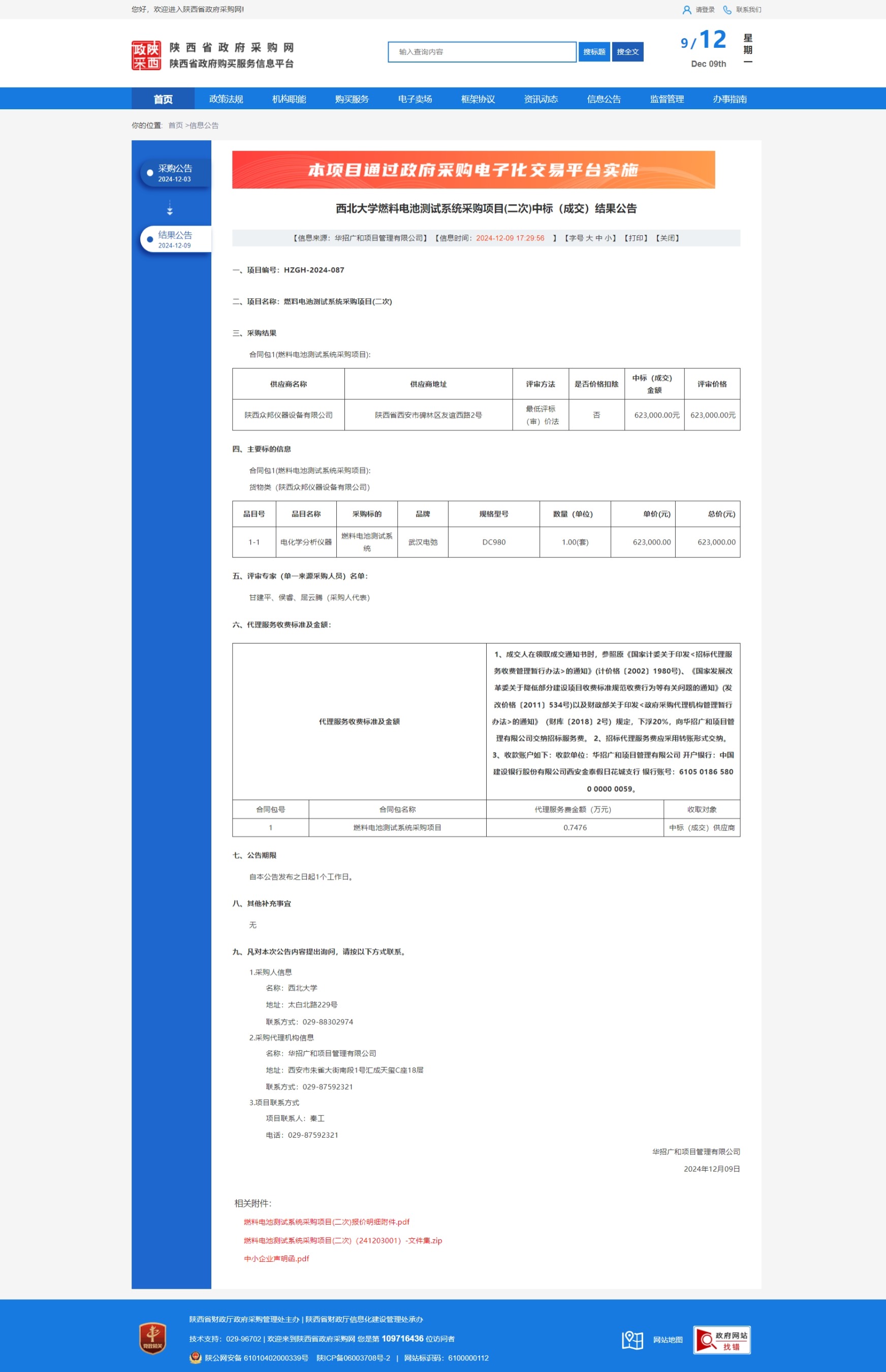 九游会在线登录官网燃料电池测试系统采购项目(二次)中标(成交)结果公告 作者: 编辑:薛利娟 时间:2024-12-09 原公告链接:https://www.ccgp-shaanxi.gov.cn/freecms/site/shaanxi/ggxx/info/2024/8a69c95d921859f00193aa9e7adf495f.html?noticeType=001023¬iceId=c4aa581b-b611-11ef-8063-08c0eb20c666
