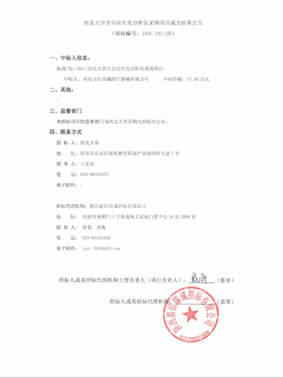 九游会在线登录官网全自动生化分析仪采购项目成交结果公告 作者:采购与招标办公室 编辑: 时间:2024-12-10 原公告链接:http://bulletin.sntba.com/resultBulletin/2024-12-10/1995691.html